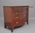 Superb quality 18th Century mahogany serpentine chest of drawers, the lovely figured and crossbanded top with a brushing slide below, four graduated long oak lined drawers, with wonderful figuration on the drawer fronts, engraved brass ring handles and escutcheons, shaped apron to the sides and front of the chest, standing on splay feet. Circa 1780.