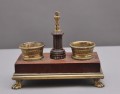 A lovely 19th Century French ormolu and mahogany desk set on ormolu claw feet, there are two ink well holders and a pen holder, in the centre is a carved wood column holding Napoleon. Circa 1820.