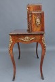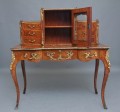 An exhibition quality 19th Century walnut Bonheur Du Jour / desk by Gillows, the top having a brass gallery running along all three sections, a cupboard at the centre with a glazed door opening to reveal a single shelf inside, lovely ormolu beading around the edge of the glass, the sides of the cupboard decorated with figural ormolu mounts with further decorative mounts below, three crossbanded drawers either side that are mahogany lined and having the original handles, further ormolu mounts either side of the drawers and highly decorative ormolu mask mounts to the sides, the figuration throughout is of exceptional quality and looks spectacular, the bottom section is in the same style of the top with further bold ormolu mounts, all original, having an ormolu moulded edge and a single frieze drawer below, which is stamped GILLOW, supported on cabriole legs which also has lovely quality mask mounts. Circa 1860.