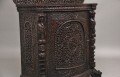 A superb quality mid 19th Century Anglo-Indian carved hardwood cabinet, having a nice figured shaped top with a highly decorative pierced and carved upstand consisting of various foliage with an oval panel at the centre with a pair of cranes, C shapes incorporating decorative scroll at either side, the top having an intricate carved edge with a frieze below with acanthus leaf carving, a single door below opening to reveal two shelves inside, the door front profusely carved all over with further foliage, central arched panel pierced and carved with further foliage and various birds and a decorative oval panel at the centre, intricate carved columns either side incorporating mythical figure heads, fruit and scrolls, lovely shaped and carved apron and supported on further mythical figure heads. Wonderful crisp carving and in excellent condition, Circa 1840.