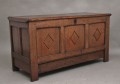 A nice quality early 18th Century oak coffer, the hinged moulded edge top lifting up to reveal a large compartment space and a candle box to the side, the three panelled front having decorative carving on each panel, and a long frieze drawer below for extra storage, panelled sides and standing on square feet. Circa 1740.