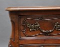 A superb quality early 20th Century French fruitwood commode of serpentine bombe form, having a shaped, moulded edge top above three small drawers over two long deep drawers with original brass handles and escutcheons, lovely carved drawer fronts, with two shaped panel ends and carved decoration on the front, carved and shaped apron, supported on carved feet. A really fabulous fruitwood colour. Circa 1920.