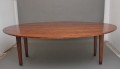 A large mid 20th Century cherry drop leaf dining table, having a wonderful figured top, of oval form once extended, supported on square tapered legs. In excellent condition and having a lovely warm rich cherry colour. Extending to 60″ (152cms)